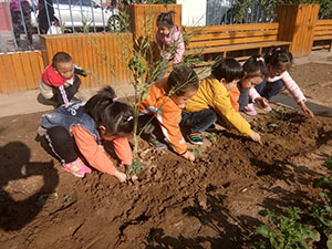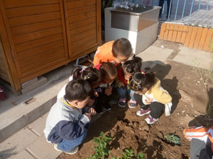 卷心菜是春季人们常吃的蔬菜之一。为了丰富孩子们的种植经验,小三班组织幼儿种植卷心菜。活动开始,老师引导幼儿认识了卷心菜的菜苗,观察了卷心菜的外部特征,随后孩子们在老师的带领下来到种植园,孩子们挖出小坑,小心翼翼的将菜苗放进菜坑里,再埋上土。不久我们就可以吃上自己种的卷心菜了!