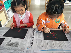 刮画是一种绘画方式,是以竹签或其它工具进行作画的。尖头的竹签用来画细线条,能更好的表现细节,扁平的可以用来画粗狂的线条或是面,画纸上层主要为黑色,下层是彩色的,刮去上层的黑色便露出下面的彩色了,色彩靓丽,对比强烈,有良好的视觉效果,刮刮画深受小朋友的喜爱,小朋友们已经迫不及待的想要试试了呢!