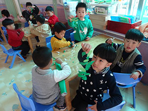 今天,中四班的孩子们一起来做绿绿的柳条,他们的兴趣都很高啊!在各种画、剪、贴中,锻炼了孩子们的手眼协调能力,同时,也使孩子们收获了快乐以及完成作品的成就感!