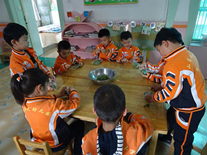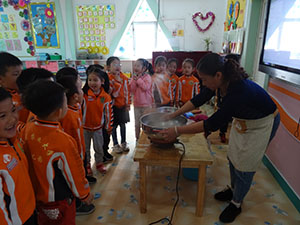 参观茶园回来后,我们大三班的小朋友们要用今天采的茶做一道美食——茶叶炒鸡蛋。每个小朋友将今天采的茶拿出一半分享,看!一芽一叶是“女儿茶”,一芽三叶是“铁观音”。首先用开水把选好的茶叶泡一下,可以去掉一部分苦味,接下来就是将茶叶切碎、打鸡蛋。小朋友们打鸡蛋的手法真熟练,不一会小盆里就装满了小朋友们亲手打的鸡蛋。最重要的一步就是“炒”了,小朋友们眼睛里露出无比的期待。最后一步,品尝。自己采的茶叶,自己打的鸡蛋,小朋友们亲身参与了整个过程,这真是无与伦比的美味呀!