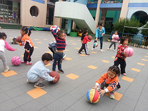 篮球是世界上最流行的球类运动之一,有趣的篮球游戏吸引着每一个宝贝。今天,小三班的孩子们就来玩转篮球了,拍一拍,滚一滚,孩子们探索了篮球的多种玩法。