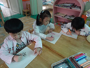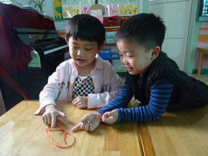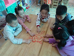 一根线从上方自然落下,会变成什么形状呢?“像鞋垫”、“像一头喝水的大象”、“像一头牛”……今天我们大三班的小朋友要帮助一根线完成一场奇妙的旅行。线条在路上遇见了什么?线条变成了什么?线条的心情是怎样的?通过浓密、快慢、粗细等的不同表现,用一根连续不断、流畅的线创作情境,一笔画成。在小朋友们的帮助下,线条完成了一场丰富而奇妙的旅行,这真是一件有成就感的事情!