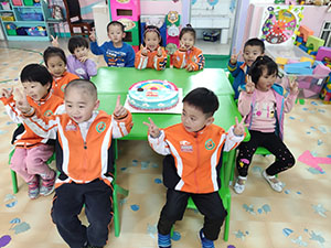 今天,是小四班吴铭心小朋友的生日,她带来了一个彩虹大蛋糕想与小朋友们分享,孩子通过分享蛋糕,和大家分享过生日的快乐。吴铭心小朋友把蛋糕分给了小朋友,小朋友都开心极了。