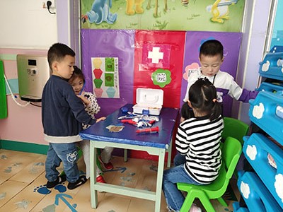 小四班多了好多新玩具,老师把它们放在了班里的活动区里,扭扭棒和拉花纸放在了手工区,小头饰和花裙子放在了表演区,小跳器和磁力片放在了益智区,还有各色绘本,大积木,娃娃家都放在不同的区域里,区域活动能鼓励孩子自由选择,大胆操作,大胆探索,促进儿童身心全面和谐的发展,让他们的心灵得到真正的满足,看,孩子们玩的开心极了。