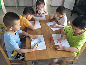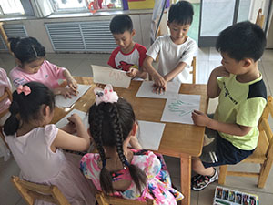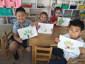手形彩绘————小朋友们开心的玩着手指变变变的游戏,然后用纸把自己变换的手形画下来,发现不同的手形可以绘画出不同的动物,同一手形也可以想象、绘画出不同的动物。通过用手形彩绘的方法来表现动物的可爱特征以及对小动物的热爱之情,更激发了小朋友对手形彩绘的创作的兴趣。