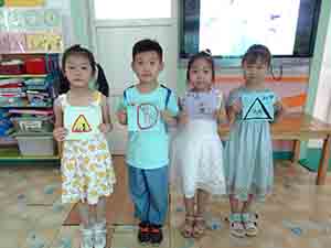 小朋友要过马路,前面有“禁止通行”的牌子,那能走吗?安全标志让人一看就能明白前方有什么危险,是否能通过。今天我们大三班的小朋友就巩固认识了多种安全标志,同时也知道了安全标志在设计上的要求与特点,比如颜色要鲜艳醒目、画面要简洁明了等。