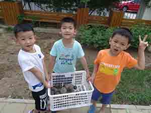 大三班开学初种的土豆,经过小朋友们的浇水、养护,今天终于丰收啦!瞧!我们的土豆是紫色的,从土里挖出来的时候,就像捡到宝一样,高兴极了。有一棵大土豆,几个小朋友一起用力才将它拔出来,小朋友们仔仔细细的在土里面找土豆,生怕漏掉一个。这次土豆大丰收,又带给小朋友们一次不一样的愉快体验,细心地呵护、勤劳的汗水、收获的快乐,让种植的喜悦伴你们成长。
