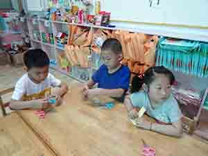 今天我们大三班的折纸活动是“小床”。这个“小床”看似简单,但是它不仅需要“折”,还需要剪刀和胶棒的配合。每个小朋友都特别认真,将纸对齐,做好的小床方方正正、很平坦,躺上去一定很舒适吧!