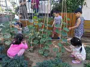 小朋友们你们喜欢吃什么蔬菜啊?那你们采摘过什么蔬菜呢?看今天小三班的小朋友们来采摘黄瓜了,看一根根黄瓜仿佛在和小朋友们摆手,好像在说小朋友快过来啊,小朋友们学习了采摘黄瓜的正确方法,欢迎来品尝哈。