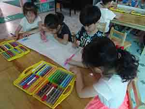 马上就要幼儿园毕业了,今天老师教给我们一种新的作画方式,叫长卷画。就是在一幅很长的画纸上画画,历史上比较有名的就是《清明上河图》。所以,今天我们大四班的小朋友们合力体验了一把长卷画。把我们在幼儿园的生活,一点一滴都画在了画纸上。
