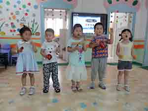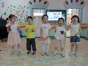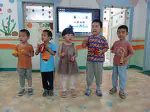 “太阳光,火辣辣,小汗珠儿滴滴答;知了吱吱叫,夏天来到了!”旋律明快、朗朗上口的二歌,向来是孩子们的最爱;再加上铃鼓、响板、双响筒及小木鱼等器乐的合奏,孩子们更是表演得畅快。一起来欣赏小二班的这场小小音乐会吧?!