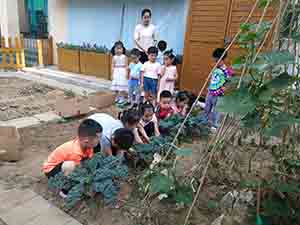 小三班的羽衣甘蓝成熟了,小朋友们在老师的带领下来收菜啦!孩子们兴奋的来到菜地里,找到自己想要的菜,握紧甘蓝根部,使劲拔起来。看看我们收获的羽衣甘蓝吧。