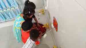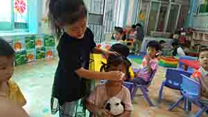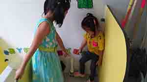 我们已经是大班的哥哥姐姐了,在“大手牵小手”活动中,我们帮助小班的弟弟妹妹如厕、洗手、喝水等并安慰弟弟妹妹不要哭爸爸妈妈下班后就来接你们。