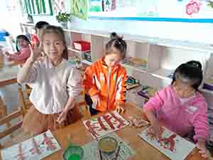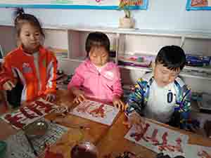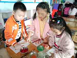 今天大二班幼儿一起用水粉来表现秋天多彩的树林,先用毛笔画好树干和树枝,再用手指蘸颜料点画树叶,最后,秋天的树林就完成了。小朋友们都可开心了!