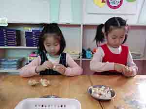 随着一股浓浓的蒜香味,在大三班活动室里,孩子们正在将一头头饱满的大蒜分成小蒜瓣儿,通过观察我们发现,尖尖的是蒜芽儿,种在土里的是蒜根,为了能吸收充足的营养,蒜瓣儿们一定要“保持距离”呦!