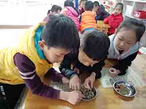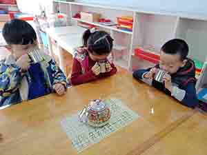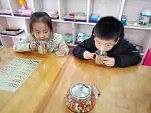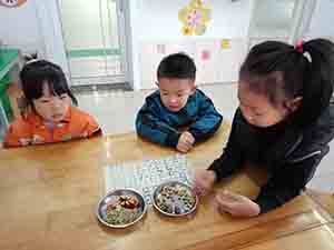生活中有很多常见的中草药,如菊花、金银花、枸杞等,大二班小朋友通过看、捏、闻等方法观察中草药,并说出了这些中草药的名称、颜色、形状等,最后,我们将菊花与枸杞泡水,小朋友们一起品尝了味道。