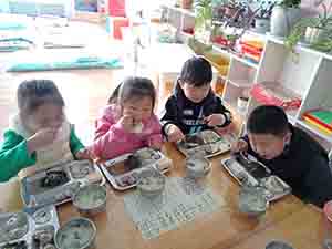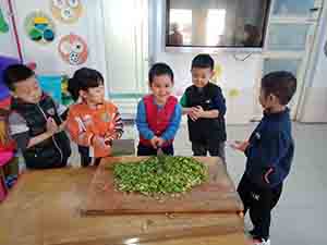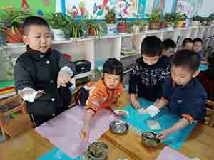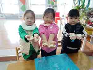 大二班小朋友们今天可高兴呢,因为要学习包馄饨了!
