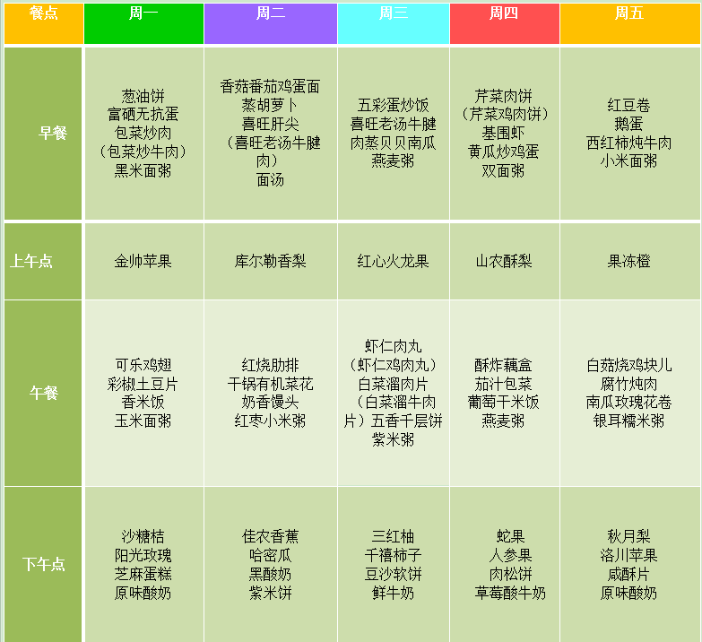 每周食谱